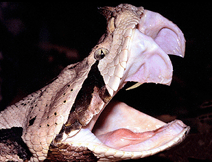 venimeux sont fixés sur le maxillaire supérieur (récolte de venins).