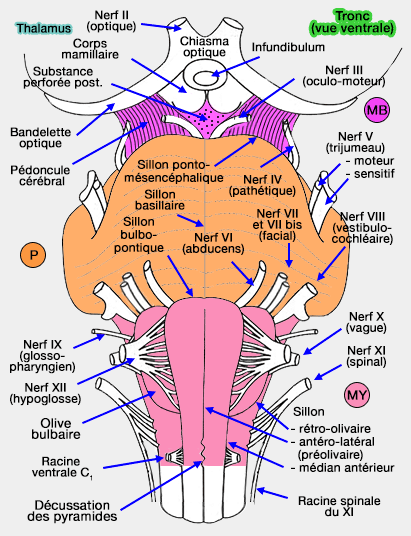 La position des noyaux des nerfs crâniens provient de l'organisation en colonnes nucléaires du tronc cérébral.