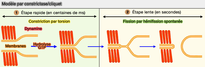Toutes ces observations ont conduit à deux modèles pour la fission catalysée par la dynamine.