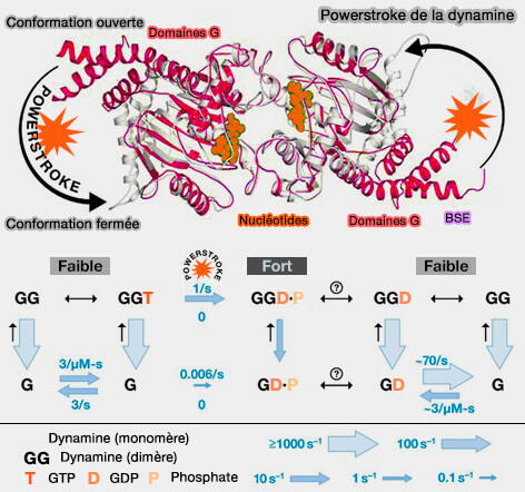 - entraîne une rotation majeure du BSE dans l'état de transition qui constitue le powerstoke de la dynamine,