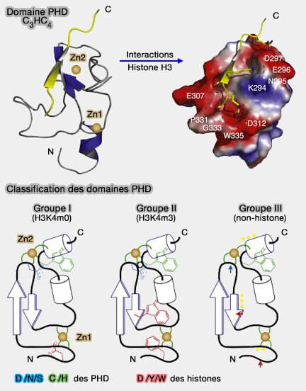 Les doigts PHD ont récemment été divisés en trois groupes (Structure and Site-Specific Recognition of Histone H3 by the PHD Finger of Human Autoimmune Regulator 2009) :