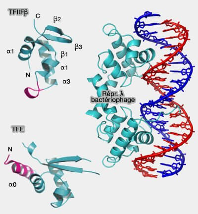 - avant hélice α1 (α0), comme dans le TFE (Archeal Transcription Factor),
