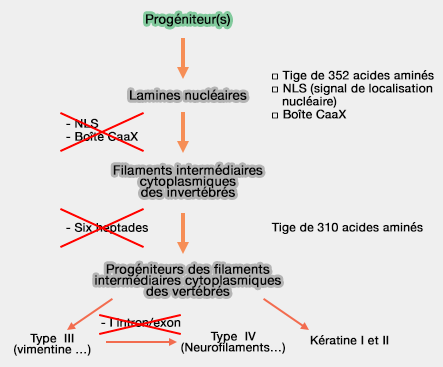 Ils dérivent tous d'un gène commun ancestral et sont codés à l'heure actuelle par une cinquantaine de gènes (Intermediate filaments: new proteins, some answers, more questions 1995).