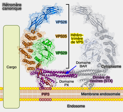 Le rétromère est un complexe de protéines hautement conservé par l'évolution qui joue un rôle important dans le tri et le trafic des endosomes précoces (Quick guide : retromer 2017).