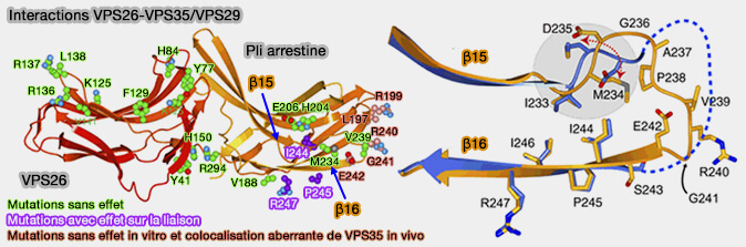 1. VPS26 possède un pli arrestine près de l'extrémité du domaine C-terminal qui se lie avec l'extrémité N-terminale de VPS35 sur un motif PRL/MYL (Identification of a conserved motif required for Vps35/Vps26p interaction and assembly of the retromer complex 2008).