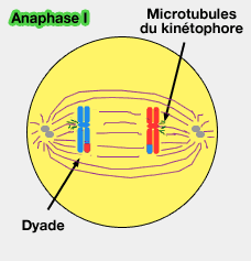 L'anaphase I (2n-4c) est la phase où les tétrades se séparent de part et d'autre du plan équatorial.