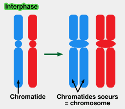 - Les chromatides soeurs, répliquées pendant cette phase, sont unis par un centromère.