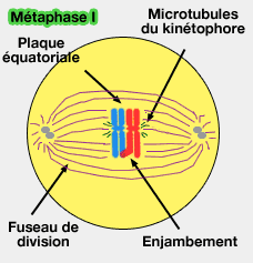 La métaphase I (2n-4c) est la phase où les tétrades se placent de part et d'autre du plan équatorial pour former la plaque équatoriale.