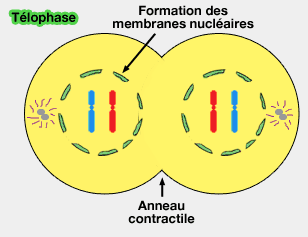 télophase (2n-1c) est la phase où les enveloppes nucléaire et cellulaire