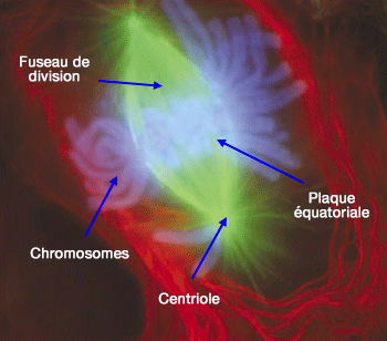 La division cellulaire (ou mitose) désigne les évènements chromosomiques de la reproduction cellulaire " non sexuée " (contrairement à la méiose) : une cellule mère produit 2 cellules filles identiques génétiquement à la cellule mère.