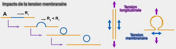 Le système membranaire tente de réduire ces perturbations en réduisant la longueur totale des frontières, i.e. l'énergie de ligne du système.