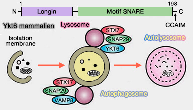 2. YKT6 mammalien intervient dans le processus de fusion autophagosome/lysosome (New insights regarding SNARE proteins in autophagosome-lysosome fusion 2021).