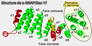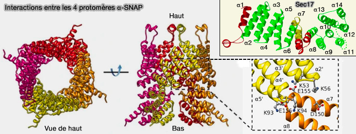 Remarque : l'absence d'interactions entre les α-SNAP au niveau de leur partie C-terminale peut expliquer la mobilité potentielle de ce domaine induite par l'hydrolyse de l'ATP médiée par la NSF.