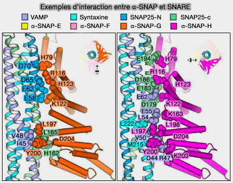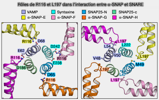 Rôles de R116 et L197 dans l'interaction entre α-SNAP et SNARE