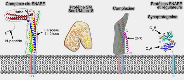 3. Les protéines SNARE jouent un rôle fondamental dans le domaine du trafic membranaire intracellulaire et leur assemblage doit être régulé pour permettre à la fusion de se produire au bon endroit et au bon moment. Cette régulation est sous le contrôle :