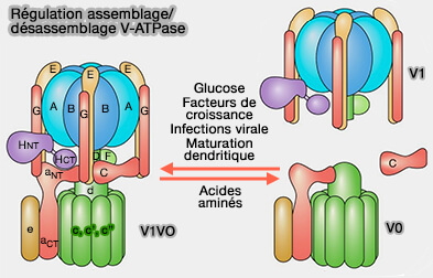 Ces mécanismes, loin d'être tous décryptés, la complexité structurelle ainsi que les différents isoformes qui localisent la V-ATPase dans des environnements cellulaires ou des systèmes d'organes distincts, permettent une régulation différenciée.