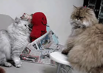 a. Soit les deux chats se mettent à tourner en rond sans pouvoir se flairer.