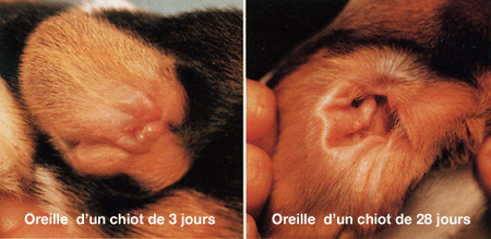 spiral de Corti s'effectue après la naissance chez le chiot,