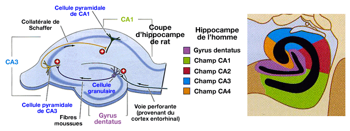 L'hippocampe, impliqué dans la mémoire à long terme (souvenir et rappel), a une structure simple pour du cortex (3 couches au lieu des 6 habituelles).