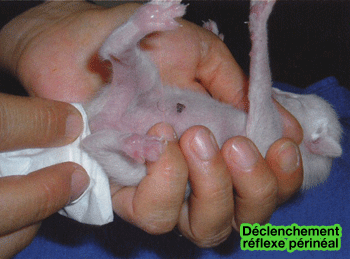 Dans le cas où la mère ne s'occupe pas des petits, il ne faut pas oublier de déclencher le réflexe périnéal pour que les petits puissent uriner ou déféquer.