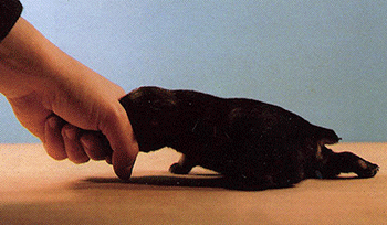 Ce réflexe peut persister sur des animaux carencés (jusqu'à 6 semaines chez le chiot)