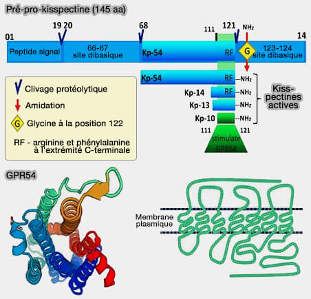 Le système kisspeptine/GPR54 est impliqué dans ce processus car l'altération du récepteur GPR54 maintient les individus à un stade pré-pubertaire.