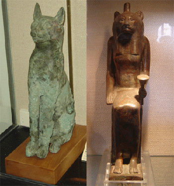 c. Cependant, Bastet peut se transformer en lionne (Sekhmet), redoutable déesse de la guerre qui ravage tout sur son passage.