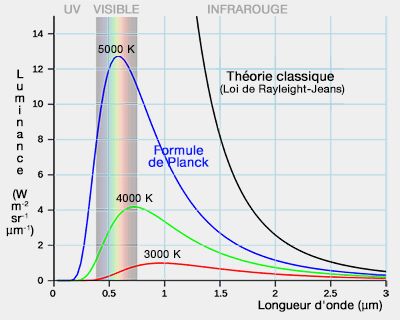 Les études de Planck sur le rayonnement électromagnétique du corps noir en 1900 lui firent découvrir la loi de répartition spectrale du rayonnement thermique du corps noir.