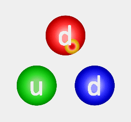 1. Les gluons sont constamment échangés entre les quarks pour confiner les couleurs dans le cas de l'interaction forte (cf. changements de couleur).