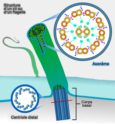Le centriole distal produit des microtubules qui forment l'axonème du flagelle du futur spermatozoïde.