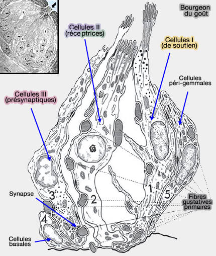 Les dendrites amyéliniques des protoneurones sensoriels s'enroulent autour des cellules gustatives proprement