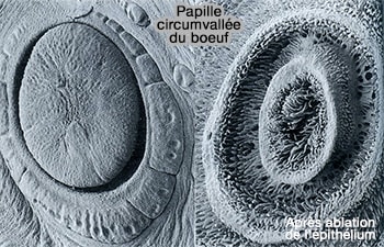 Les papilles caliciformes, de forme ronde, sont les plus grandes et les moins nombreuses :