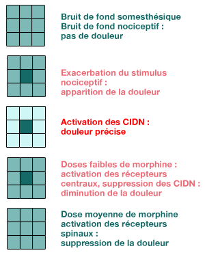 (facilitatrices ou inhibitrices) sur les neurones nociceptifs.