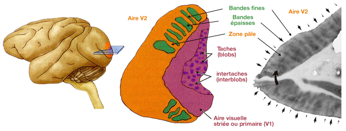 Il existe environ une trentaine d'aires extrastriées (V2, V3…,