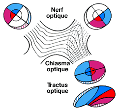 fibres optiques des régions nasales croisent la ligne médiane