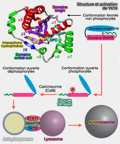 Ykt6 s'auto-inhibe aussi par l'interaction de son domaine longin avec son propre domaine SNARE ( activation de Ykt6).