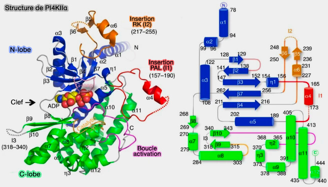 Pour plus de détails, vous pouvez lire : Phosphatidylinositol 4-kinases: Function, structure, and inhibition (2015) et Structural Basis for Regulation of Phosphoinositide Kinases and Their Involvement in Human Disease (2018).