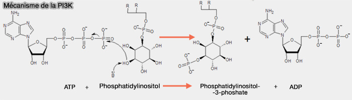 - PI3K ou phosphoinositide 3-kinases ou PtdIns 3-kinases, qui phosphorylent l'hydroxyle en position 3,