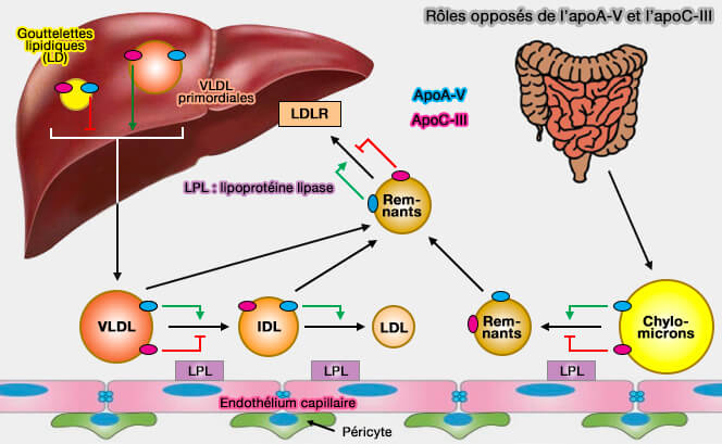 Remarque : l'apoA-V peut également prévenir la production de chylomicrons intestinaux.