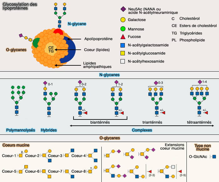 Vous pouvez lire un article récent très complet : The known unknowns of apolipoprotein glycosylation in health and disease (2022).