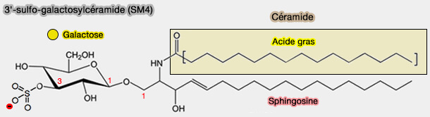 1. Toutefois, Le 3'-sulfo-galactosylcéramide, appelé aussi SM4, est l'un des constituants glycolipidiques les plus abondants de la myéline.