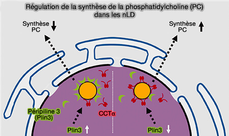 La périlipine-3 (Plin3) entre en compétition avec le CCTα dans la liaison nucléaire de la LD et semble fonctionner comme un régulateur du CCTα.