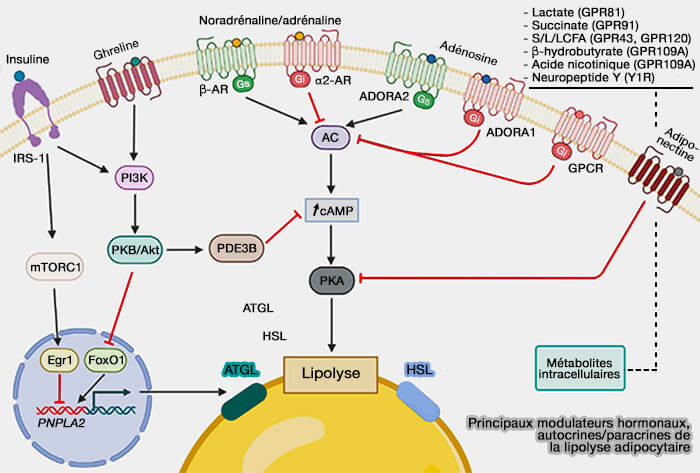 Principaux modulateurs hormonaux, autocrines/paracrines de la lipolyse adipocytaire
