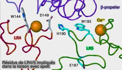 Cette séquence chargée négativement interagit avec des résidus chargés positivement sur l'apoB et l'apoE pour permettre la liaison aux lipoprotéines.