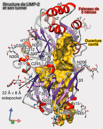 Un faisceau analogue à trois hélices a été identifié comme site principal de liaison du ligand dans CD36 et LIMP-2.