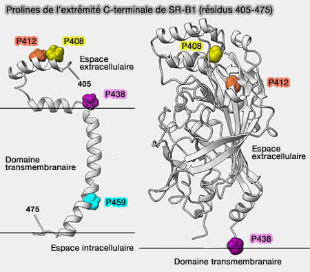 Ces régions extracellulaires assuraient la coordination entre de nombreuses zones de SR-B1 et orientent le récepteur pour une liaison efficace du ligand et le transport du HDL-C, i.e. des mutations perturbent le fonctionnement de SR-B1.