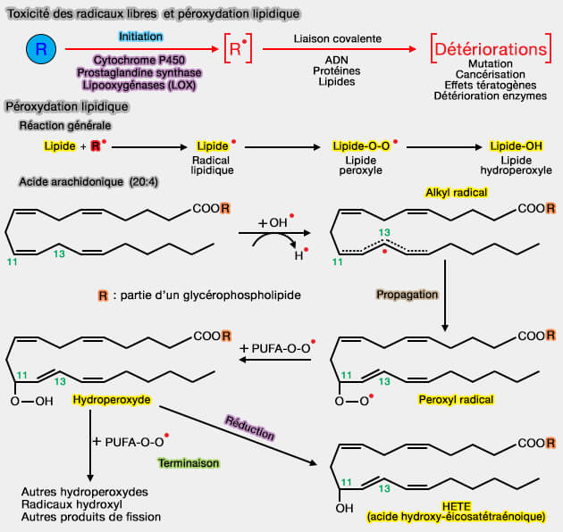 Les lipides non oxydés enzymatiquement sont produits par oxydation incontrôlée via des mécanismes de radicaux libres ( plus bas).
