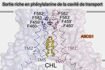 Phe459 et Phe460 sont hautement conservés dans tous les membres de la sous-famille ABCG, tandis que Phe582 et Phe583 sont conservés dans les transporteurs ABCG1.