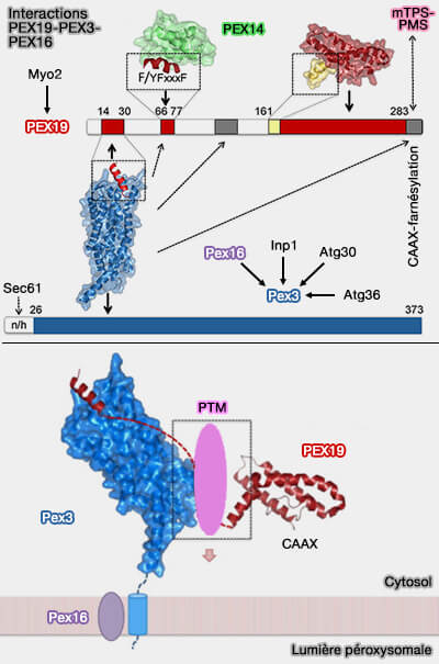 Pex19 lie et stabilise les PMP nouvellement synthétisés via leur motif de reconnaissance mPTS.