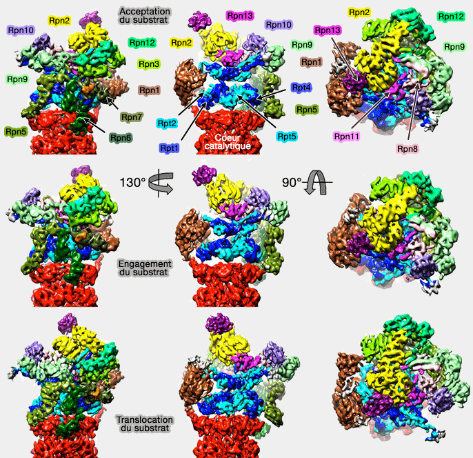 Vous pouvez aussi voir deux films tirés de cet article : sur les changements de conformation vus de côté et vus du haut du protéasome.